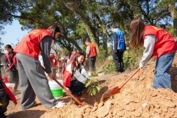 行径现场,志愿者们单干和洽、劲头统共。扶苗培土、挥锹挖坑、踩实浇水,每一起工序齐精湛持重,在林业责任站专科东谈主员的期间指点下,一棵棵新苗絮叨挺立,酿成了一起靓丽的绿色风光线。